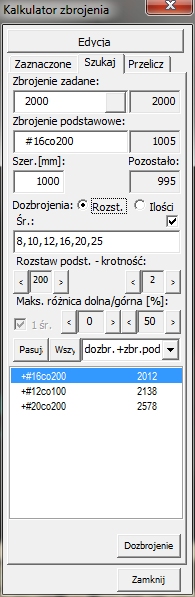 Zmiana wartości zbrojenia na zadany procent grubości
