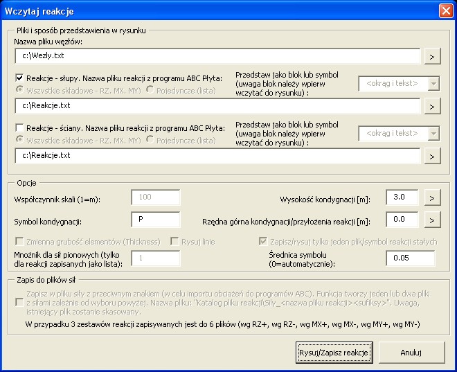 pliku reakcji ze słupów - plik zapisany opcją